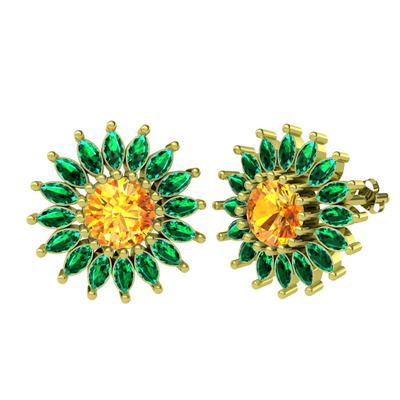 Sitrin ve yeşil kuvars 14 ayar altın küpe