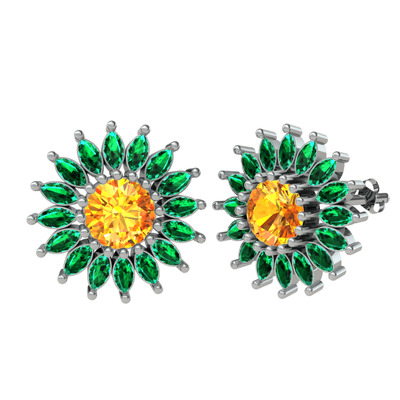 Sitrin ve yeşil kuvars 18 ayar beyaz altın küpe
