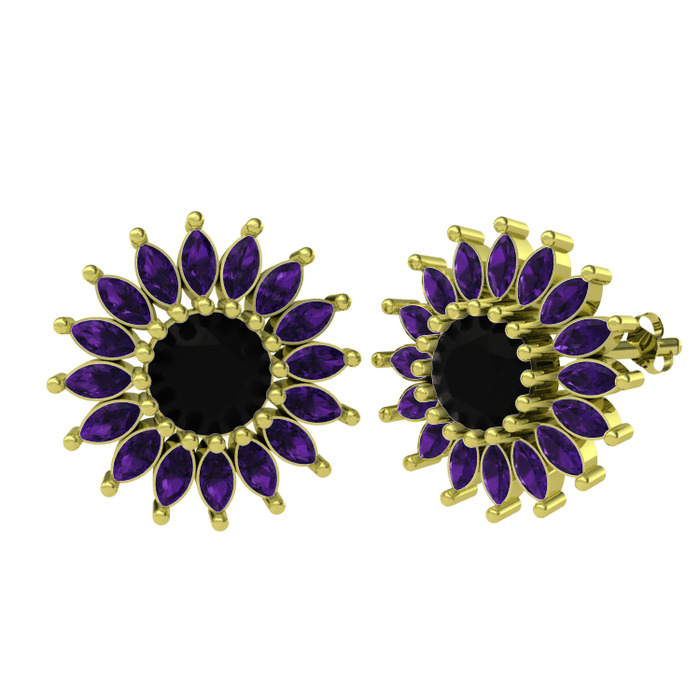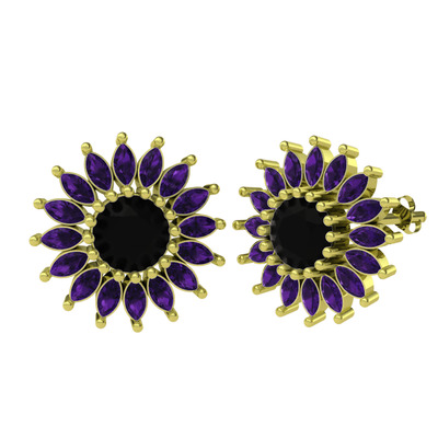 Siyah zirkon ve ametist 8 ayar altın küpe