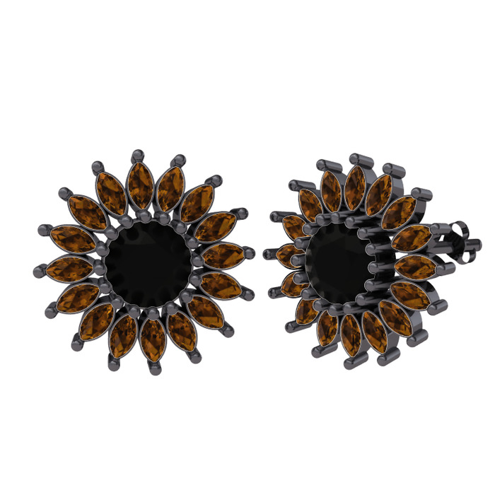 Siyah zirkon ve dumanlı kuvars 925 ayar siyah rodyum kaplama gümüş küpe