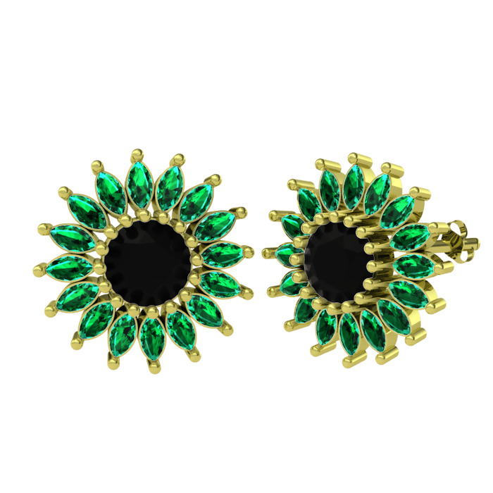Siyah zirkon ve yeşil kuvars 8 ayar altın küpe