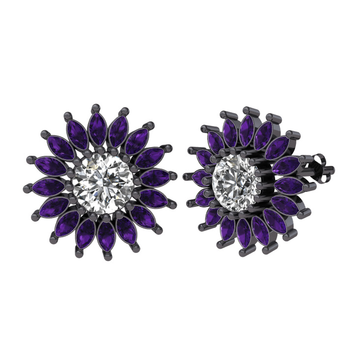 Swarovski ve ametist 925 ayar siyah rodyum kaplama gümüş küpe