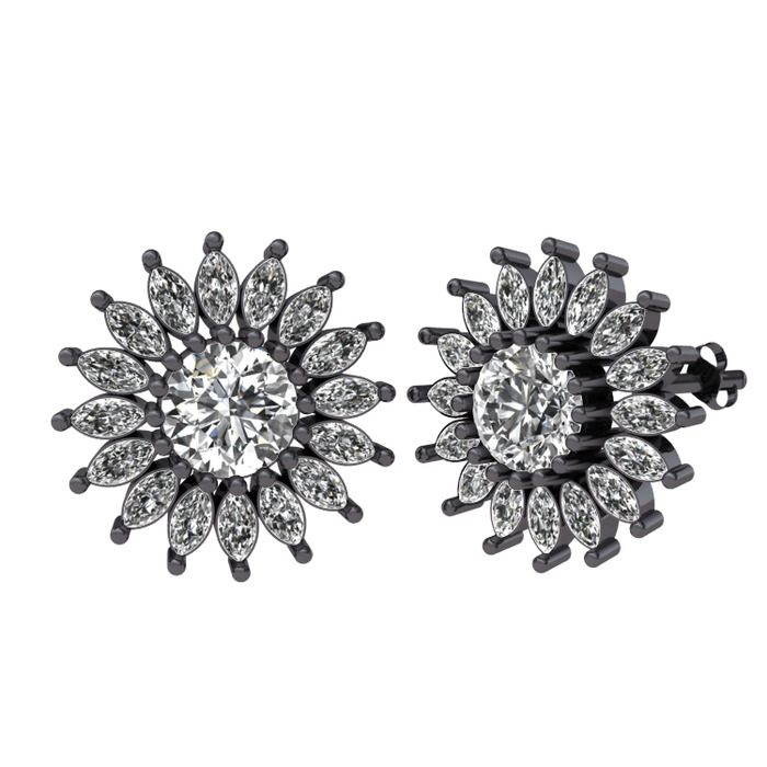 Swarovski ve beyaz zirkon 925 ayar siyah rodyum kaplama gümüş küpe
