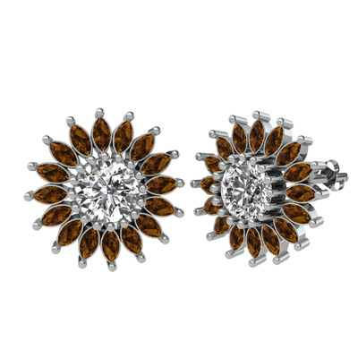 Swarovski ve dumanlı kuvars 18 ayar beyaz altın küpe