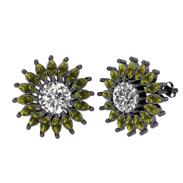 Swarovski ve peridot 925 ayar siyah rodyum kaplama gümüş küpe