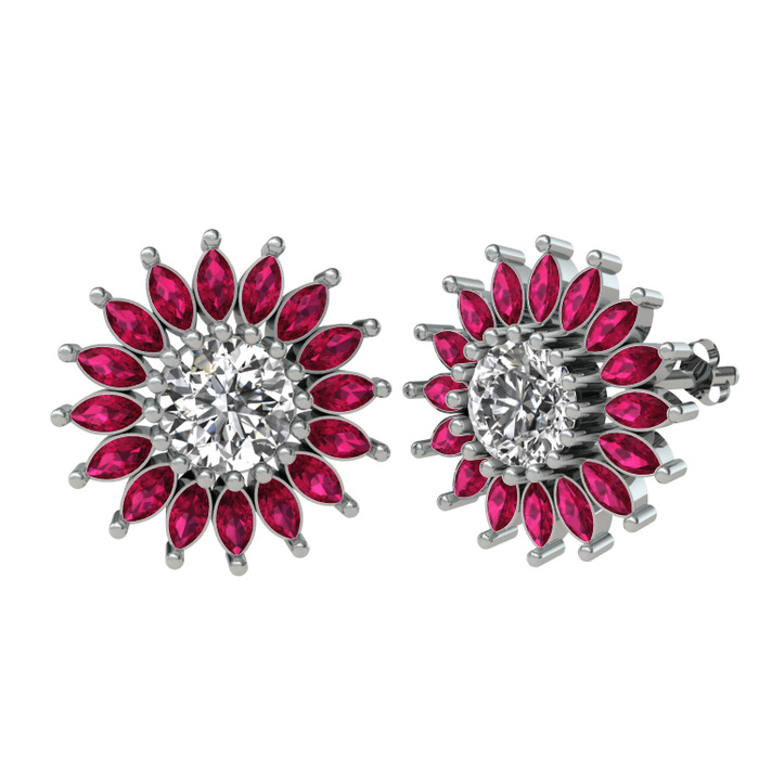 Swarovski ve rodolit garnet 8 ayar beyaz altın küpe