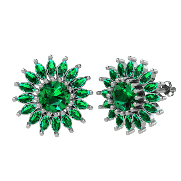 Yeşil kuvars 18 ayar beyaz altın küpe