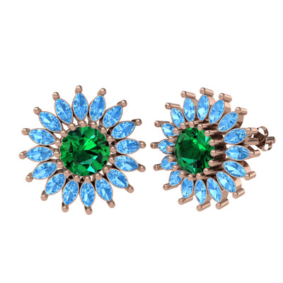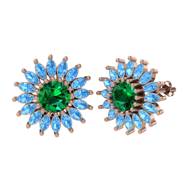 Yeşil kuvars ve akuamarin 8 ayar rose altın küpe