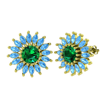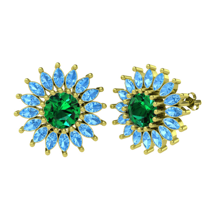 Yeşil kuvars ve akuamarin 925 ayar altın kaplama gümüş küpe