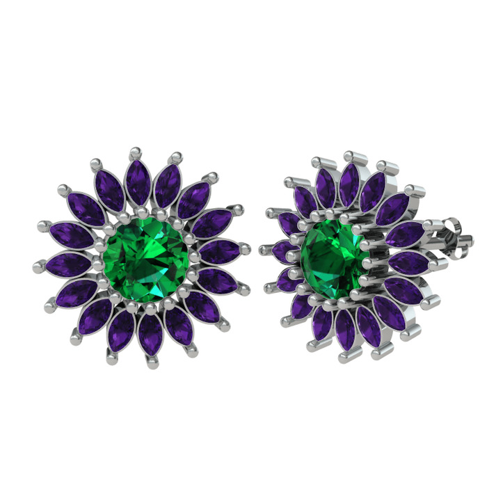 Yeşil kuvars ve ametist 8 ayar beyaz altın küpe