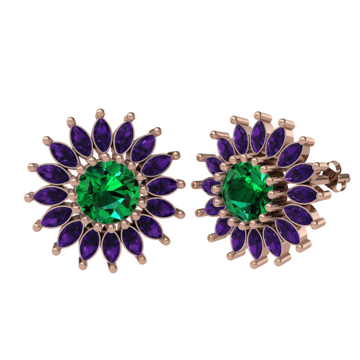 Yeşil kuvars ve ametist 925 ayar rose altın kaplama gümüş küpe