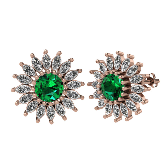 Yeşil kuvars ve beyaz zirkon 14 ayar rose altın küpe