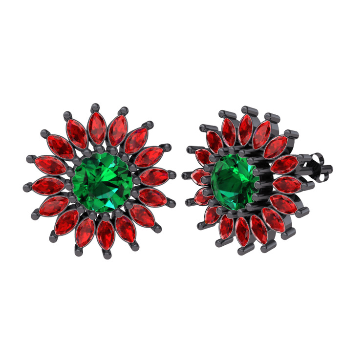 Yeşil kuvars ve garnet 925 ayar siyah rodyum kaplama gümüş küpe