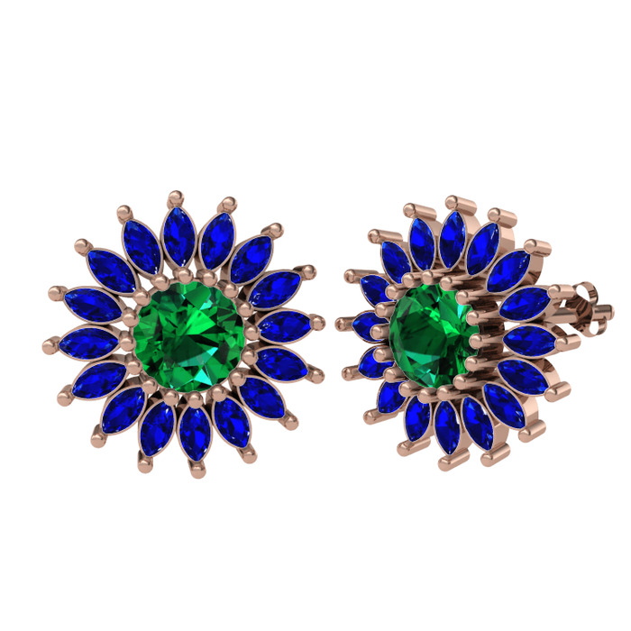 Yeşil kuvars ve lab safir 14 ayar rose altın küpe