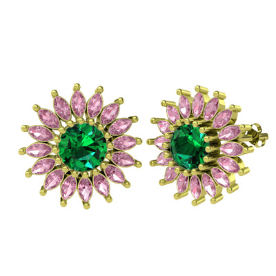 Yeşil kuvars ve pembe kuvars 925 ayar altın kaplama gümüş küpe