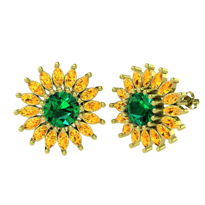 Yeşil kuvars ve sitrin 925 ayar altın kaplama gümüş küpe