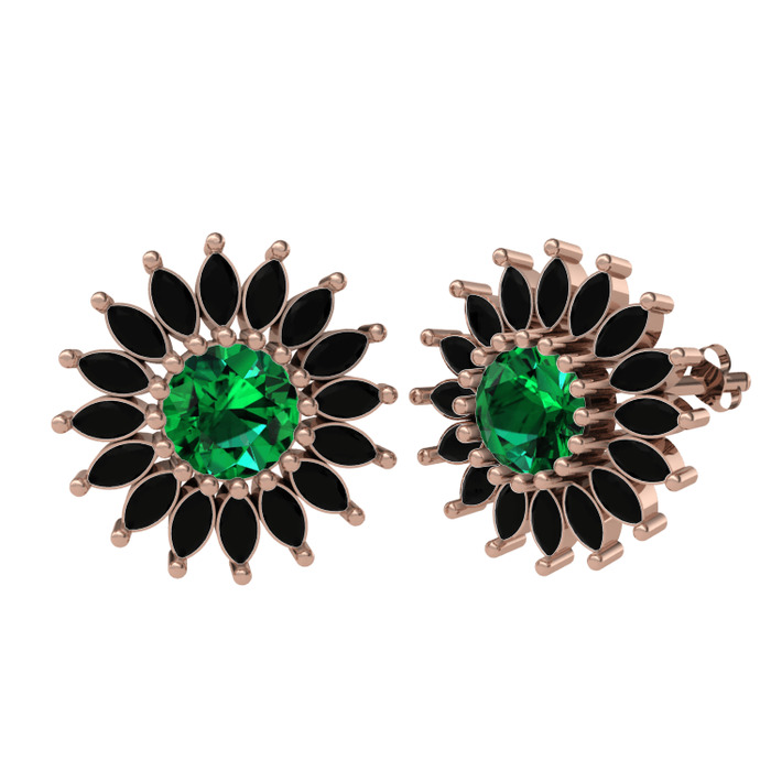 Yeşil kuvars ve siyah zirkon 14 ayar rose altın küpe