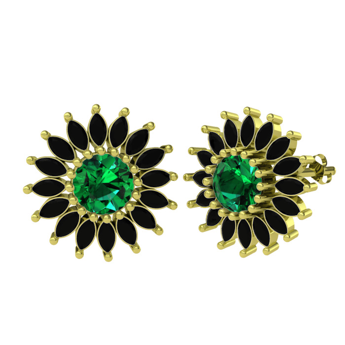 Yeşil kuvars ve siyah zirkon 18 ayar altın küpe