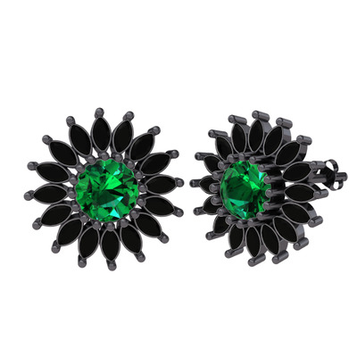 Yeşil kuvars ve siyah zirkon 925 ayar siyah rodyum kaplama gümüş küpe
