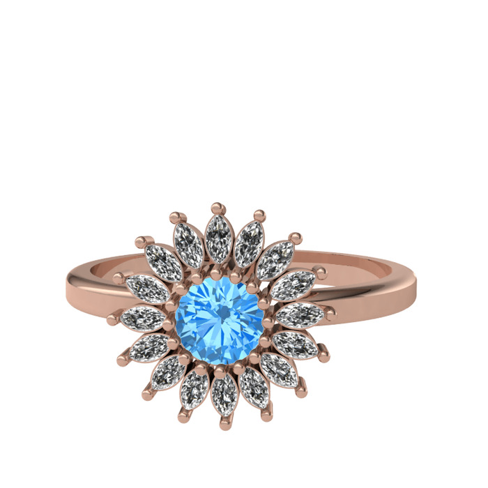 Akuamarin ve beyaz zirkon 925 ayar rose altın kaplama gümüş yüzük