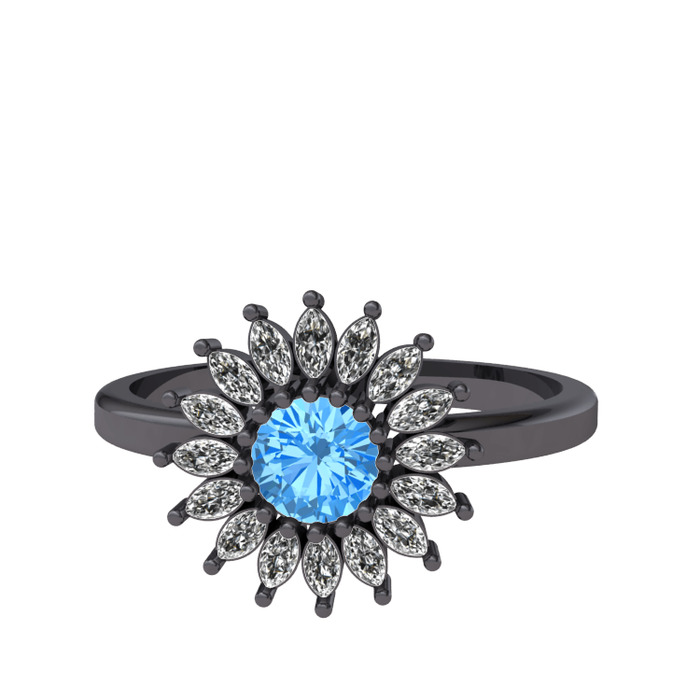 Akuamarin ve beyaz zirkon 925 ayar siyah rodyum kaplama gümüş yüzük