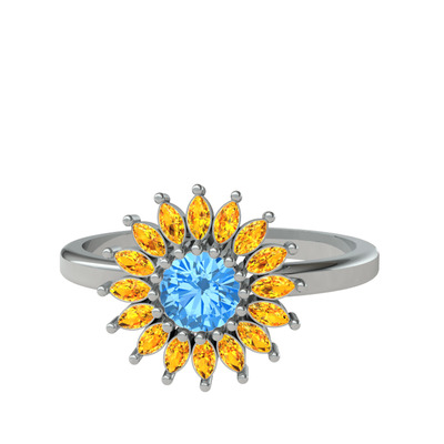 Akuamarin ve sitrin 925 ayar gümüş yüzük