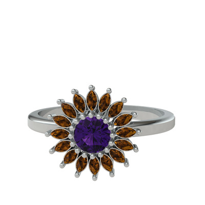 Ametist ve dumanlı kuvars 14 ayar beyaz altın yüzük