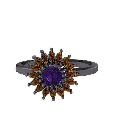 Ametist ve dumanlı kuvars 925 ayar siyah rodyum kaplama gümüş yüzük