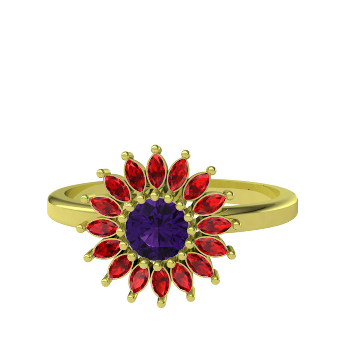 Ametist ve garnet 925 ayar altın kaplama gümüş yüzük
