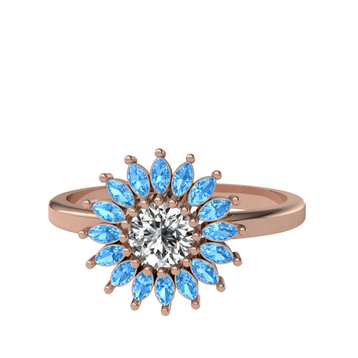 Beyaz zirkon ve akuamarin 14 ayar rose altın yüzük