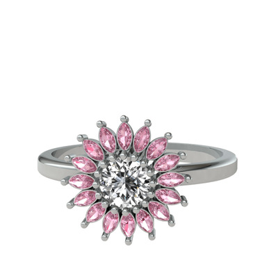 Beyaz zirkon ve pembe kuvars 14 ayar beyaz altın yüzük