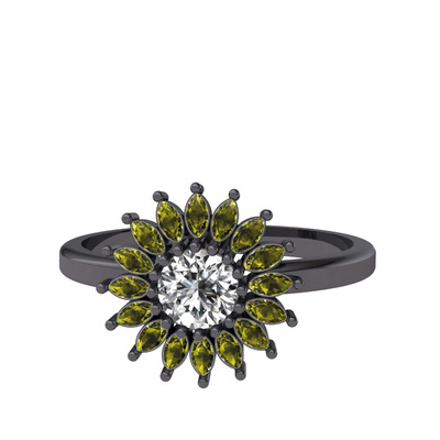 Beyaz zirkon ve peridot 925 ayar siyah rodyum kaplama gümüş yüzük