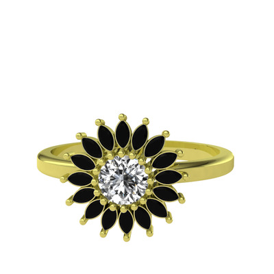 Beyaz zirkon ve siyah zirkon 8 ayar altın yüzük