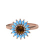 Dumanlı kuvars ve akuamarin 925 ayar rose altın kaplama gümüş yüzük