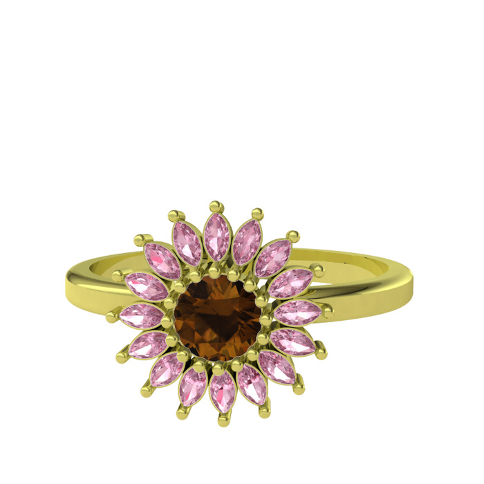 Dumanlı kuvars ve pembe kuvars 14 ayar altın yüzük