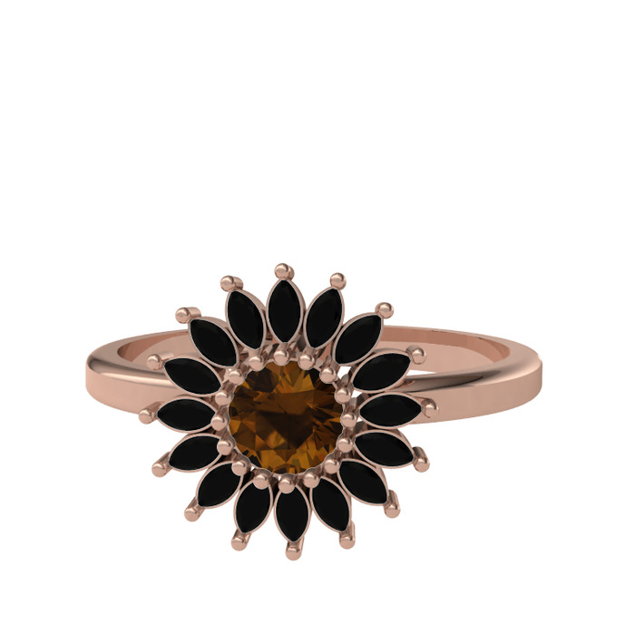 Dumanlı kuvars ve siyah zirkon 925 ayar rose altın kaplama gümüş yüzük