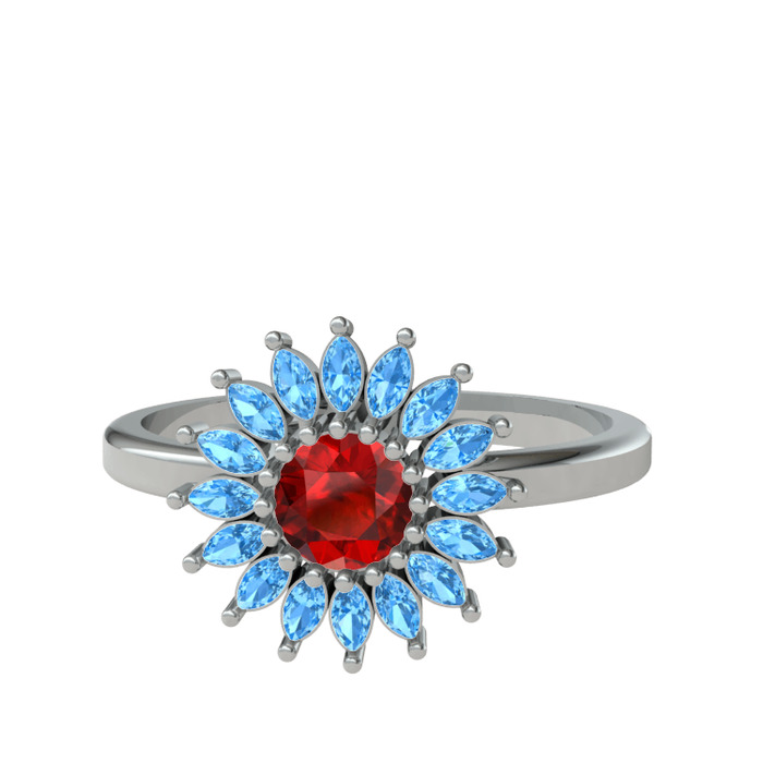 Garnet ve akuamarin 8 ayar beyaz altın yüzük