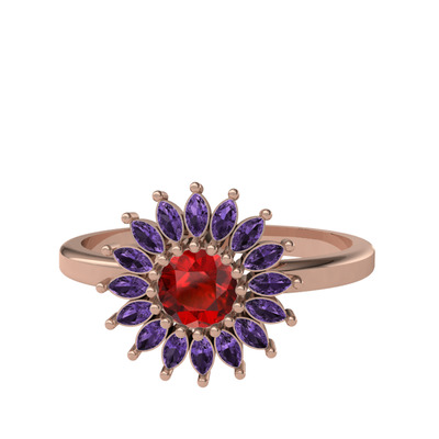 Garnet ve ametist 14 ayar rose altın yüzük