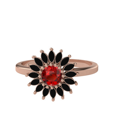 Garnet ve siyah zirkon 925 ayar rose altın kaplama gümüş yüzük