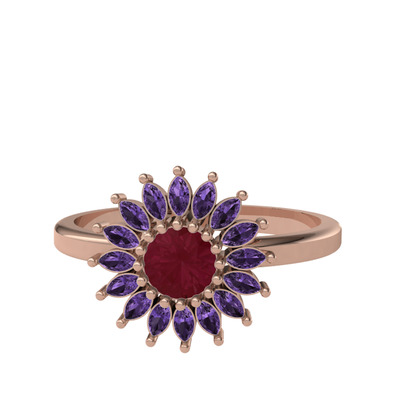 Kök yakut ve ametist 14 ayar rose altın yüzük