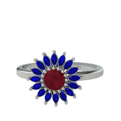 Kök yakut ve lab safir 14 ayar beyaz altın yüzük