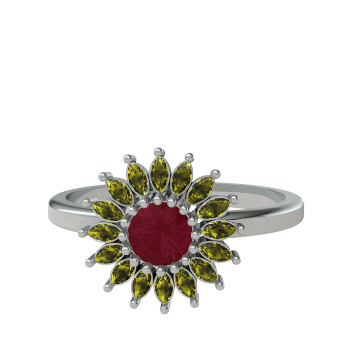 Kök yakut ve peridot 8 ayar beyaz altın yüzük