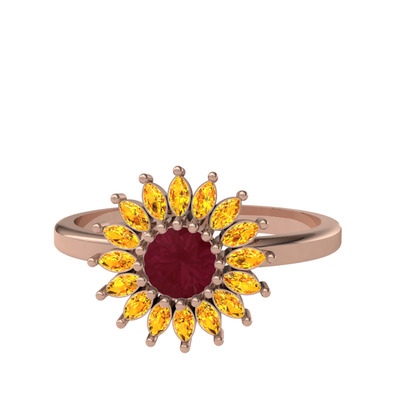 Kök yakut ve sitrin 925 ayar rose altın kaplama gümüş yüzük