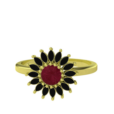 Kök yakut ve siyah zirkon 18 ayar altın yüzük