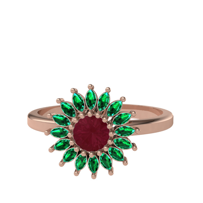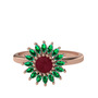 Kök yakut ve yeşil kuvars 18 ayar rose altın yüzük