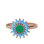 Kök zümrüt ve akuamarin 18 ayar rose altın yüzük