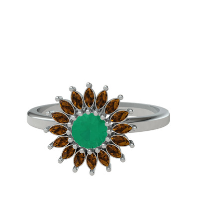 Kök zümrüt ve dumanlı kuvars 8 ayar beyaz altın yüzük
