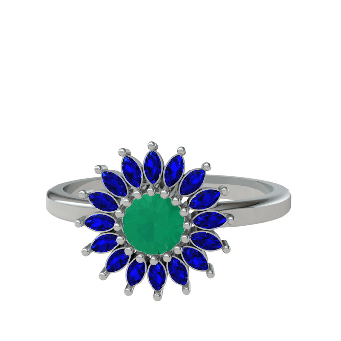 Kök zümrüt ve lab safir 925 ayar gümüş yüzük