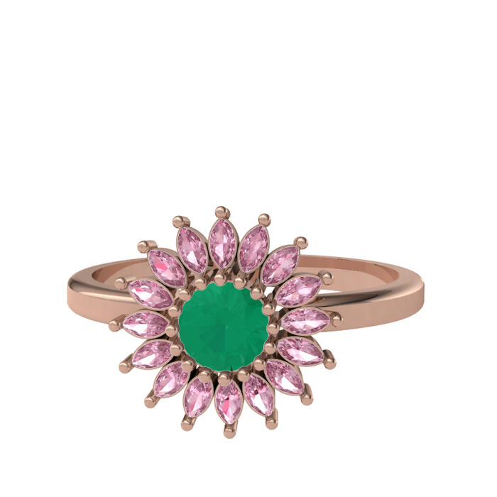 Kök zümrüt ve pembe kuvars 18 ayar rose altın yüzük
