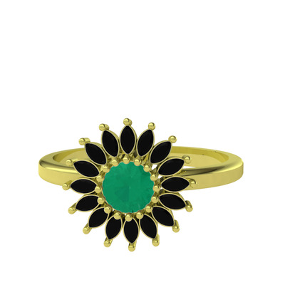 Kök zümrüt ve siyah zirkon 8 ayar altın yüzük